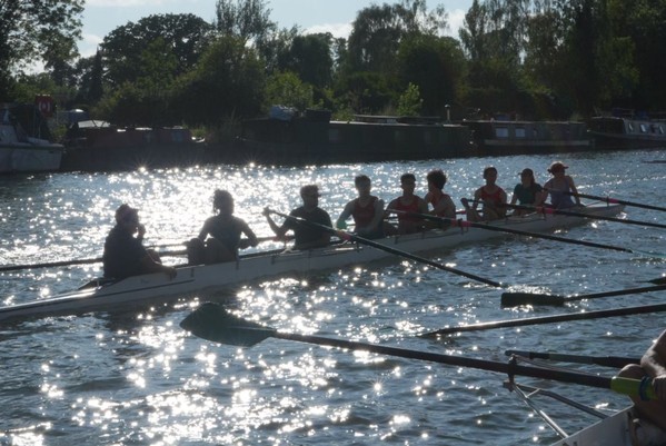 图2:清晨的阳光洒在泰晤士河上,赛艇队员与牛津大学Jesus学院赛艇俱乐部(JCBC)开展联合训练。赛艇在2公里的训练河道上激桨逐浪,与牛津各学院训练船只交相辉映