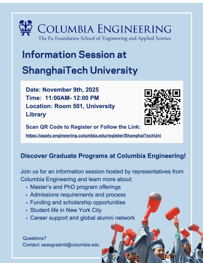 宣讲会 | 11月9日11:00,哥伦比亚大学工学院硕博项目